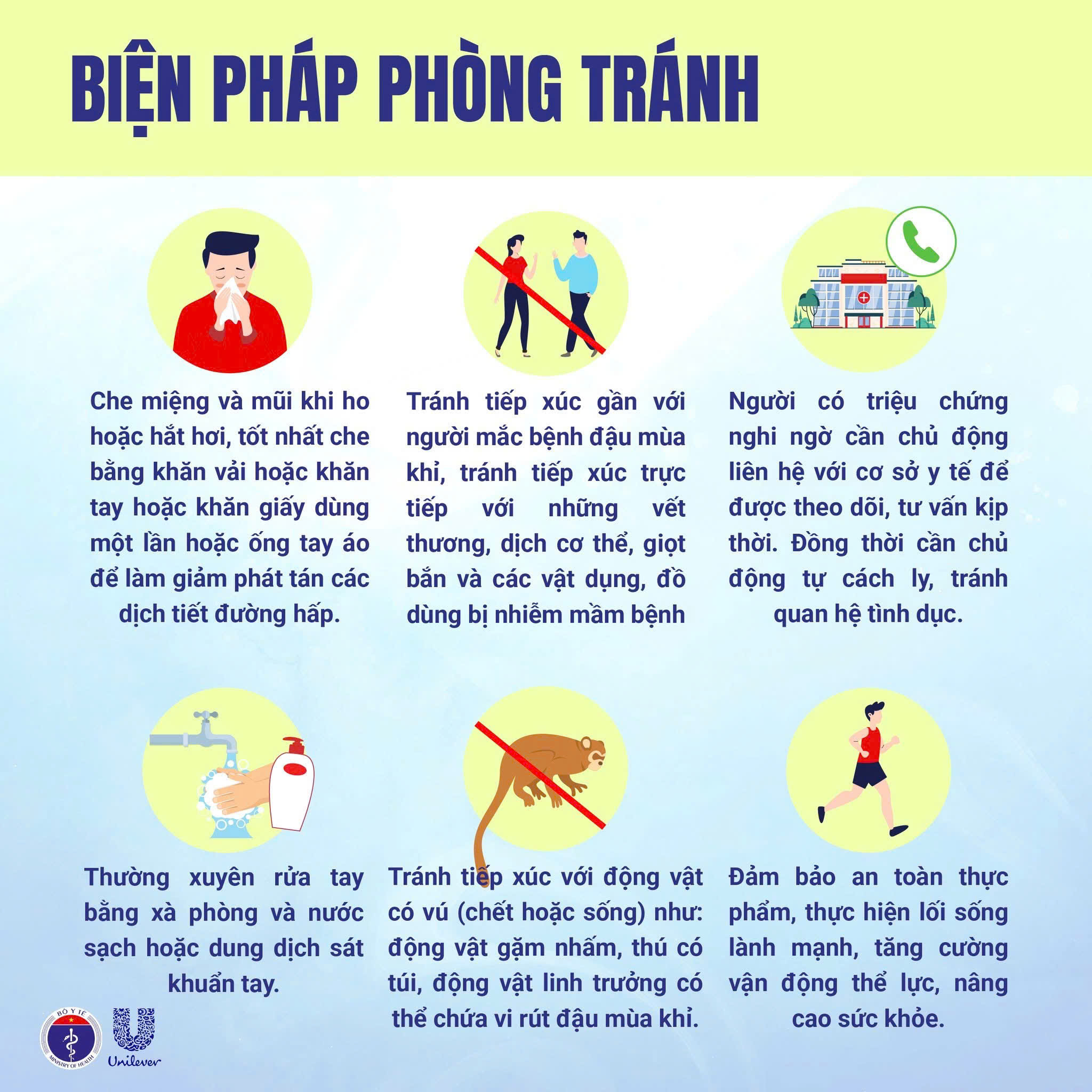 - Thực hiện nghiêm chỉ đạo của Chính phủ và hướng dẫn của Bộ Y tế về giám sát, chẩn đoán, điều trị và phòng ngừa lây nhiễm bệnh đậu mùa khỉ.