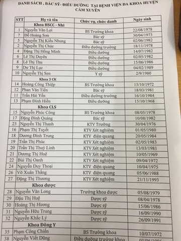 Trung tâm Y tế Cẩm Xuyên cập nhật danh sách đăng ký thực hành khám bệnh, chữa bệnh