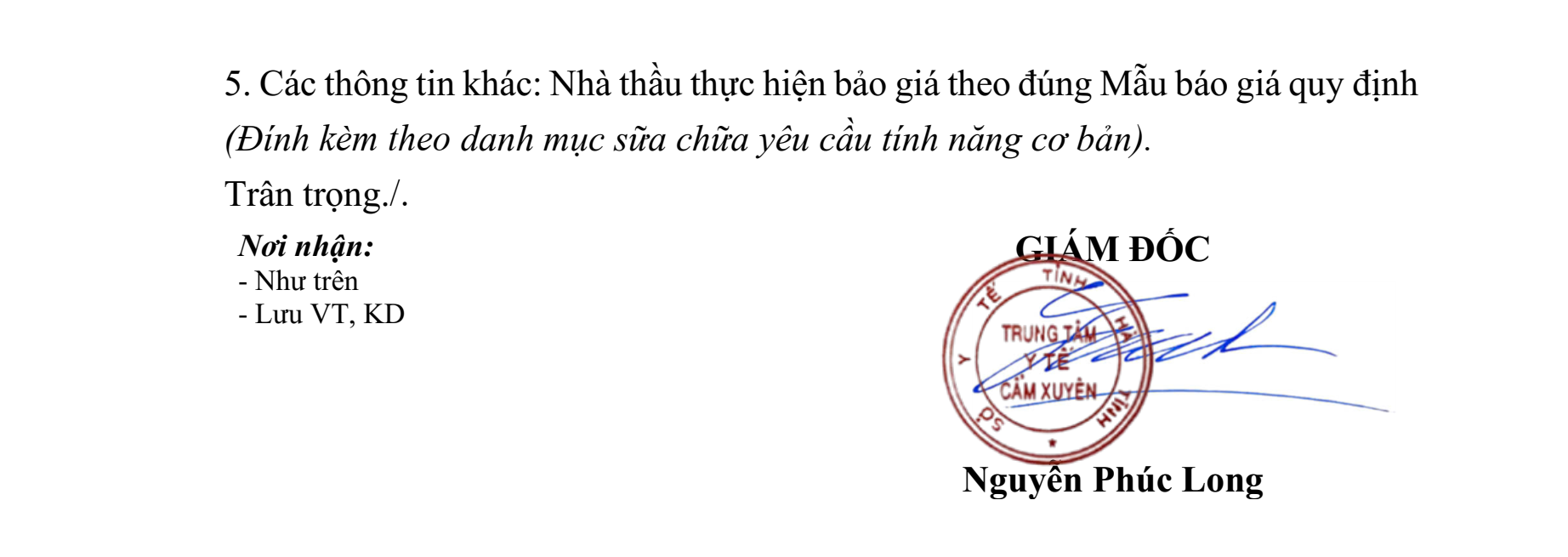 Thư yêu cầu báo giá sửa chữa máy xét nghiệm sinh hoá Randox Daytona+