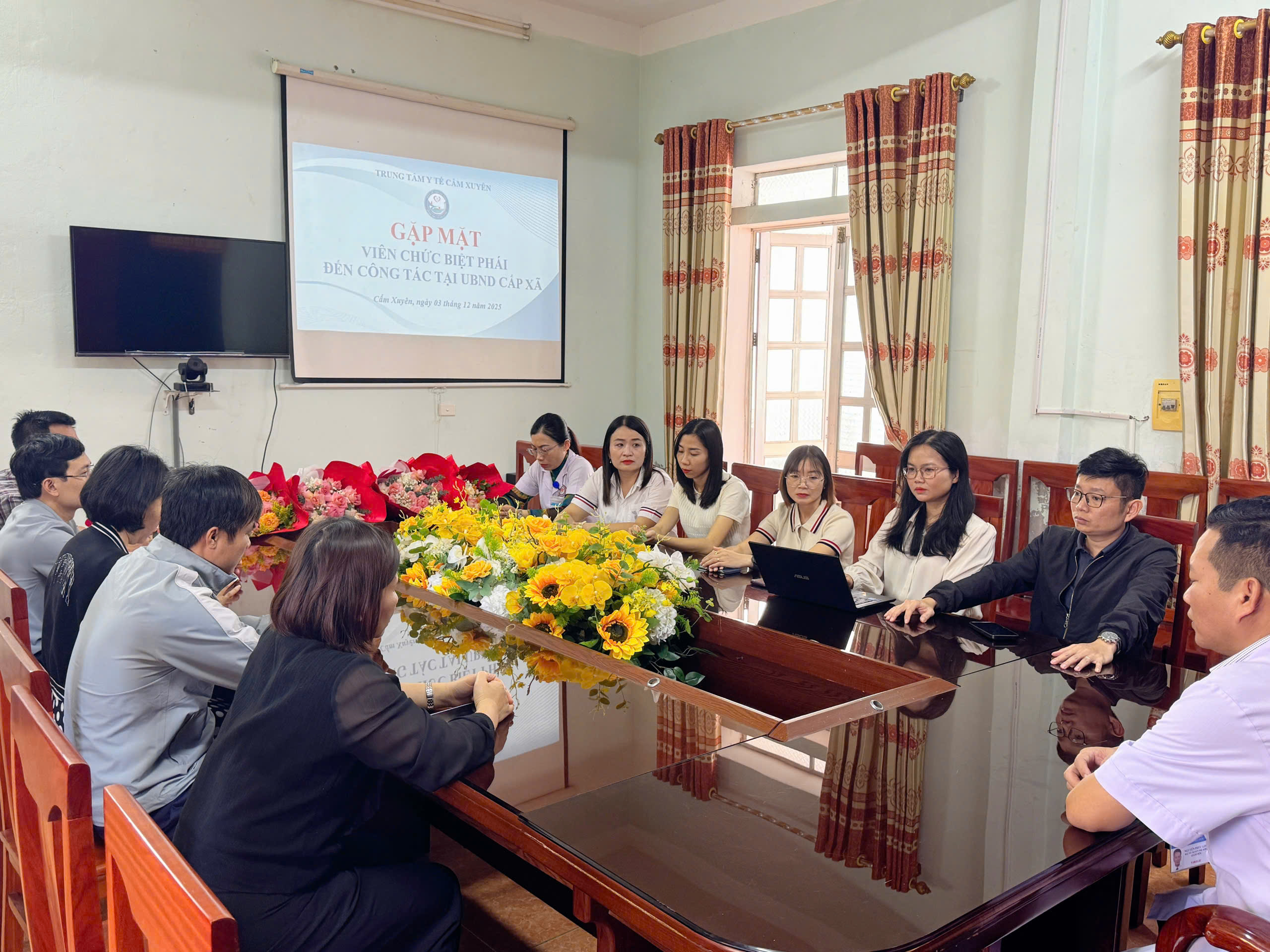 Chiều ngày 3/12, Trung tâm Y tế Cẩm Xuyên tổ chức buổi gặp mặt viên chức biệt phái đến công tác tại phòng Văn hóa – Xã hội thuộc Ủy ban nhân dân các xã trên địa bàn. Tham dự buổi gặp mặt có đồng chí Nguyễn Phúc Long – Bí thư Đảng ủy Giám đốc Trung tâm, đồng chí Nguyễn Thùy Phong – Phó Giám đốc Trung tâm, các đồng chí trưởng khoa phòng phụ trách cùng các đồng chí biệt phái đợt này. Buổi gặp mặt diễn ra trong không khí ấm áp, gần gũi, thể hiện sự quan tâm của Ban Giám đốc Trung tâm đối với đội ngũ viên chức trước khi lên đường nhận nhiệm vụ mới.