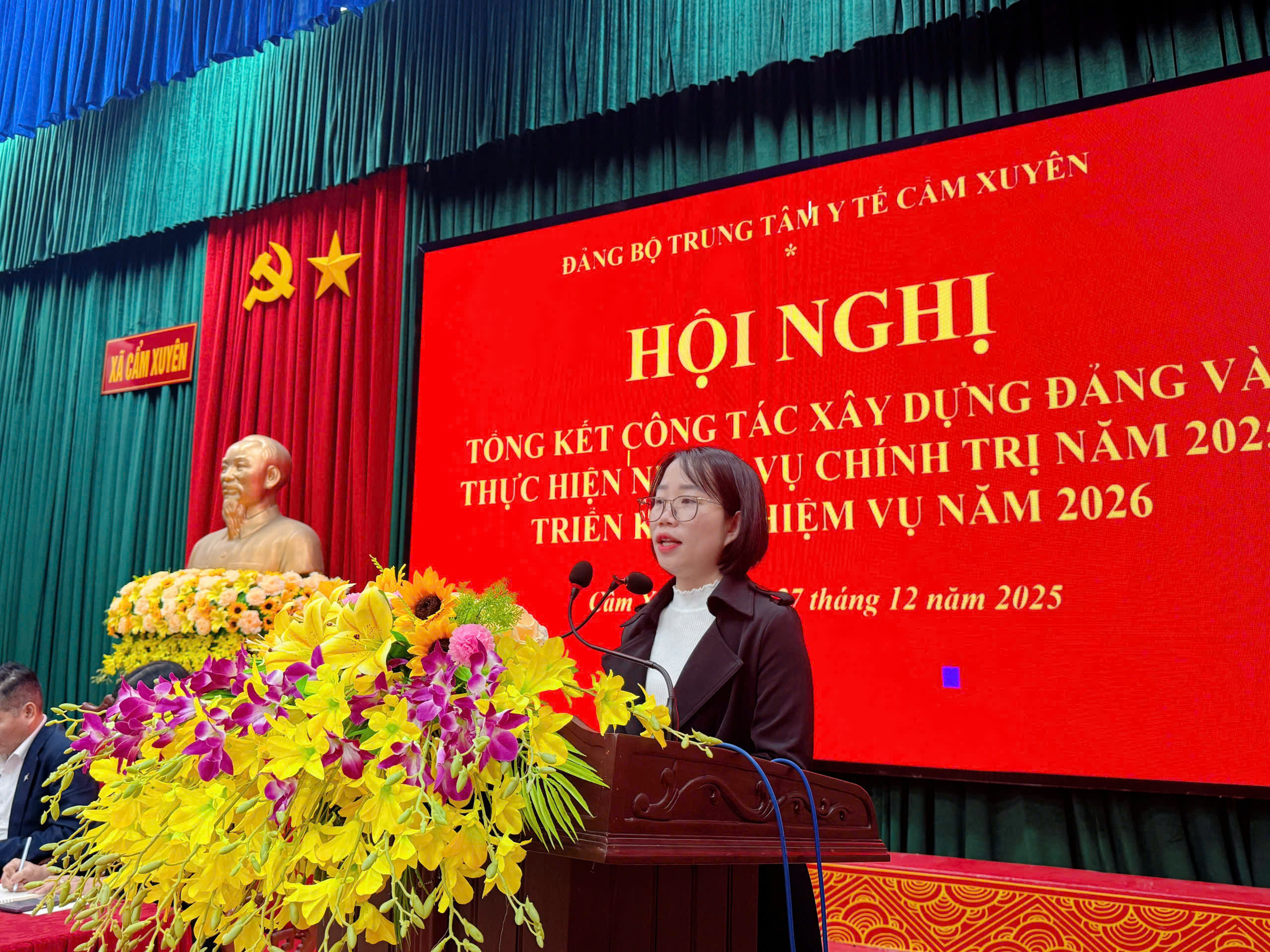 Hội nghị là dịp quan trọng để Trung tâm Y tế Cẩm Xuyên nhìn lại toàn diện kết quả đã đạt được trong công tác xây dựng Đảng và thực hiện nhiệm vụ chính trị năm 2025, thẳng thắn đánh giá những mặt làm được, những tồn tại, hạn chế, rút ra bài học kinh nghiệm; đồng thời tạo sự thống nhất cao về nhận thức và hành động, phát huy tinh thần đoàn kết, trách nhiệm, quyết tâm thực hiện thắng lợi các nhiệm vụ, mục tiêu đã đề ra trong năm 2026 và những năm tiếp theo.